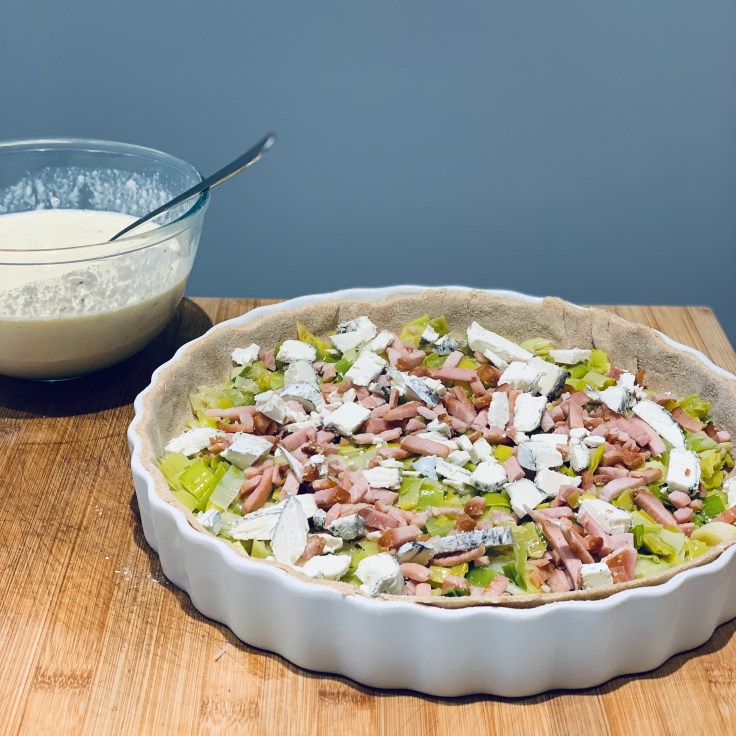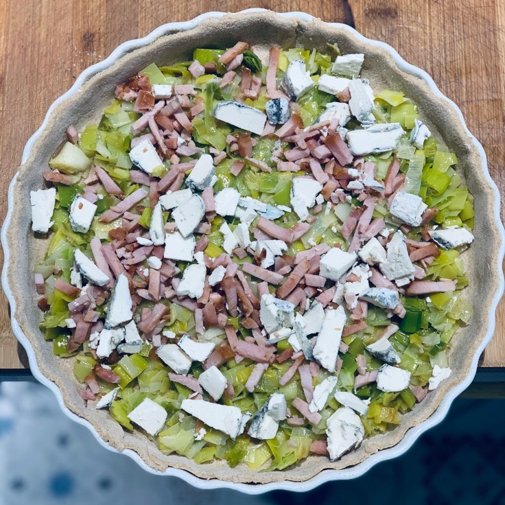 L’association du poireau et du bacon fonctionne très bien. Pour encore plus de plaisir, j’ajoute aussi quelques tranches de fromage de chèvre sec. Une tuerie !