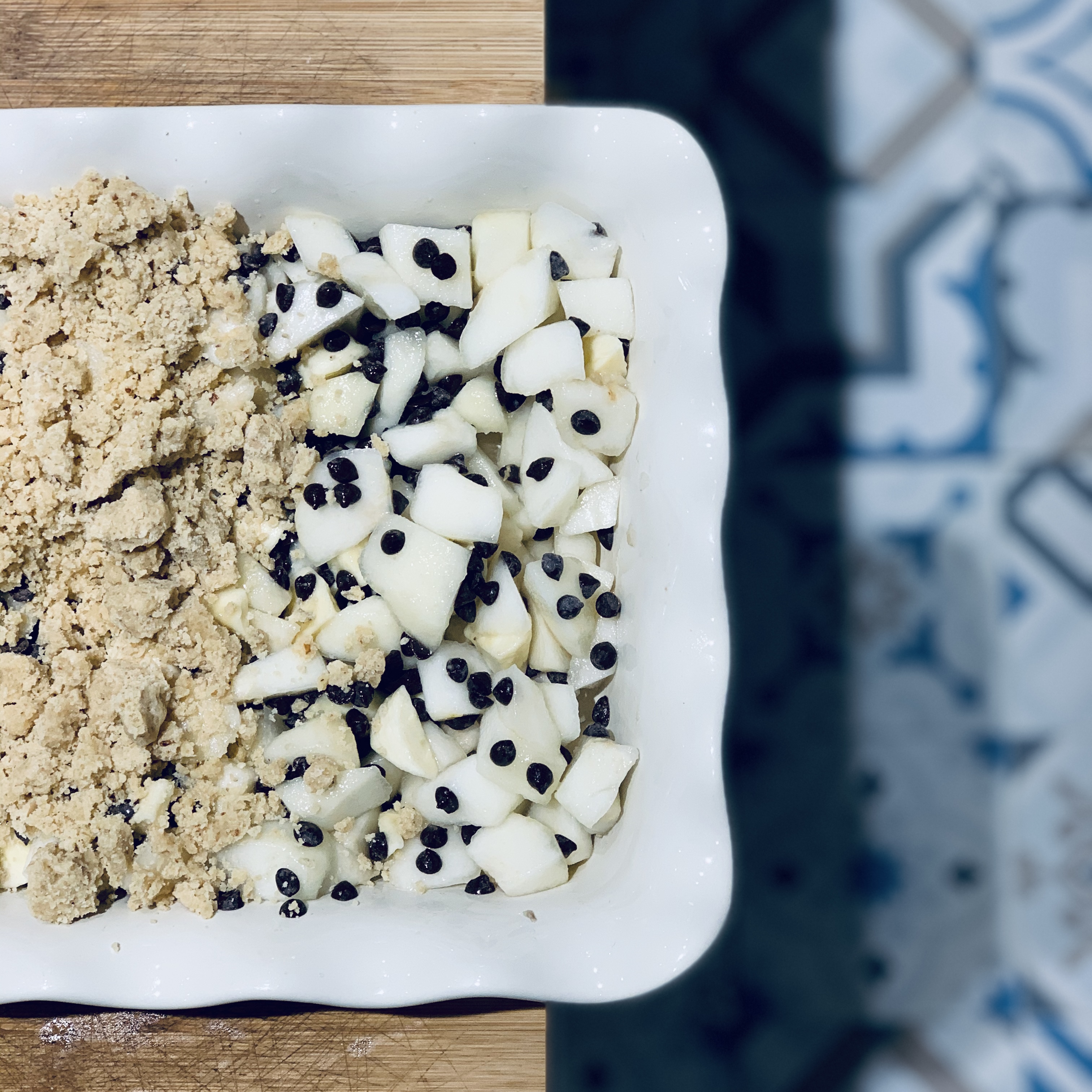 Une recette ultra simple et rapide pour un plaisir gourmand avec peu d’ingrédients. Nous parlons du crumble poires et pépites de chocolat !!!