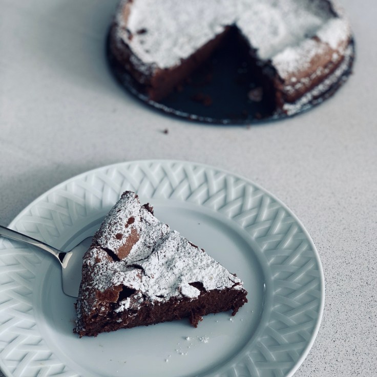 - Sur la gâteau au chocolat classique à température ambiante (surtout pas froid),saupoudrer un tout petit peu de sucre glace