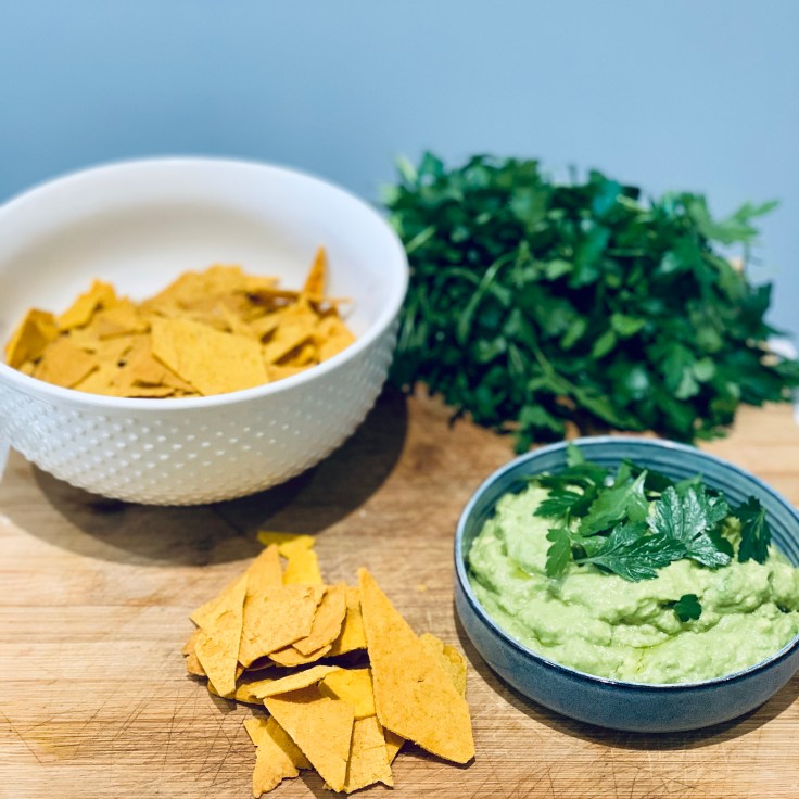 - des tortillas chips (nachos) à base de farine de maïs et cuites au four une quinzaine de minutes. Cela peut être préparer quelques heures en avance.