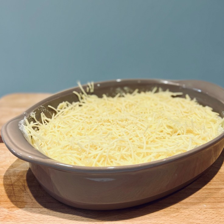 - Disposer quelques morceaux de beurre sur le dessus et de fromage râpé