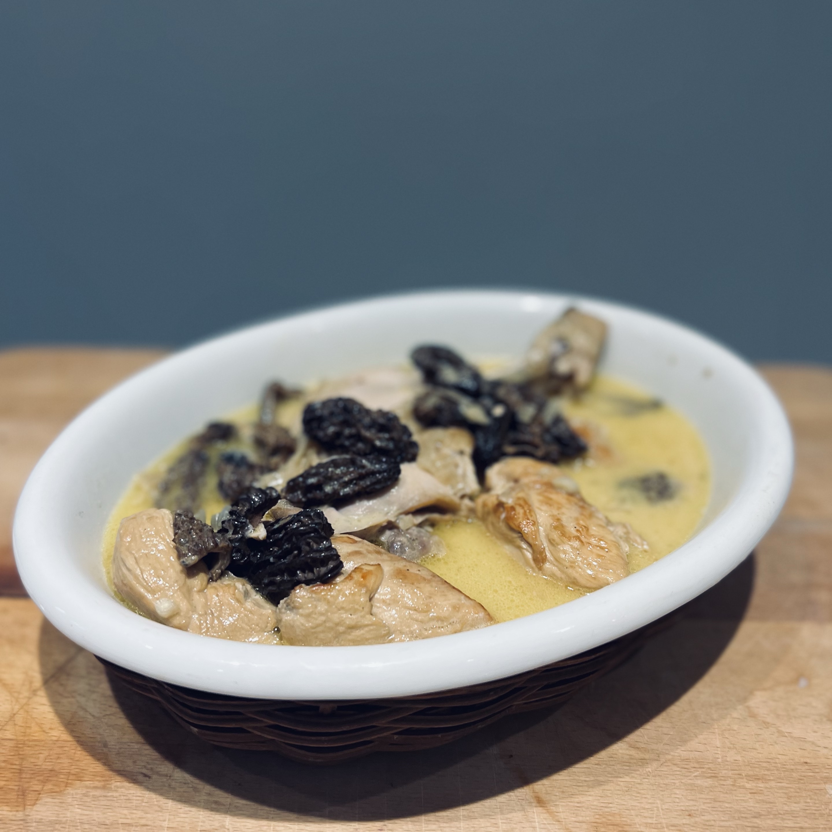 - 5 min avant de servir, ajouter la crème et les morilles.