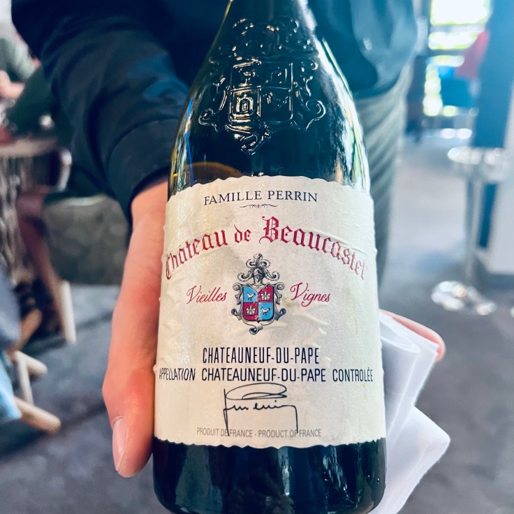On boit ! Incroyable carte des vins avec des références quasi introuvables (dont le Clos Rougeard ♥️). On a fait une infidélité à la Loire et avons opté sur les conseils du sommelier pour un Châteauneuf du Pape : le château Beaucastel vieille vignes (100% roussanne). Et bien nous avons bien fait c’était une tuerie !