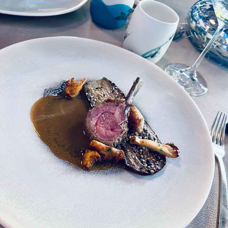 - Agneau de Belle-Île rosé limite cru (génial) et girolles, un délice