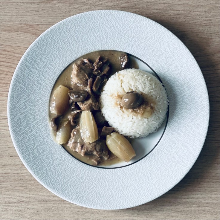 La blanquette, à la lecture de certains ouvrages (en complément de ma recette, toujours comparer ;)), je m’aperçois que chaque famille a sa recette ou ses convictions … avec/sans champignons, avec/sans poireaux, avec/sans crème …