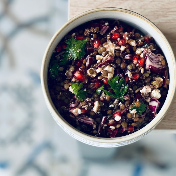 Une recette simple qui met à l’honneur une légumineuse française : la lentille verte ! La lentille verte regorge de bienfaits : riche en protéines, source de vitamines B6, de phosphore, de fibre, de magnésium, de fer, de potassium !!! Le plus : elle est disponible toute l’année.