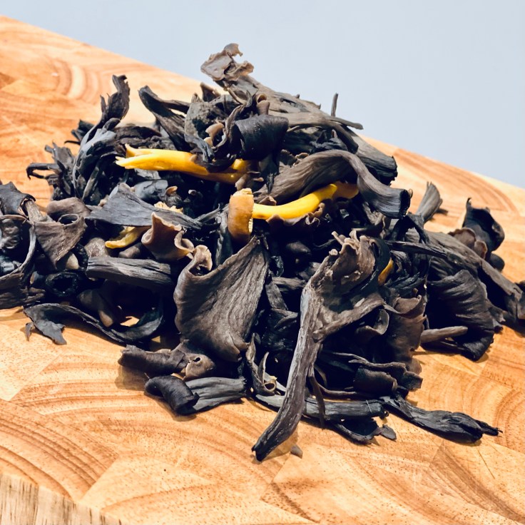 - 225gr de champignons émincés : 100% champignons de Paris ou 100% trompettes de la mort en direct de la forêt ou mix 100gr de girolles & 125gr de champignons de Paris