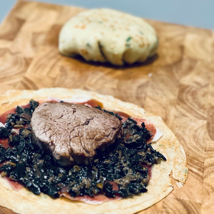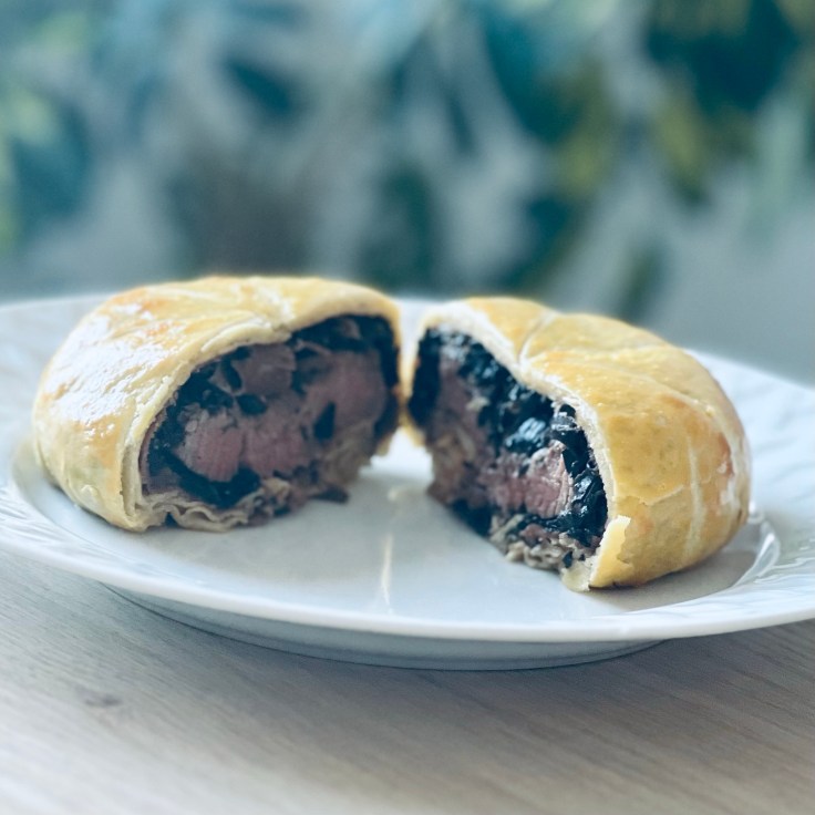 Dans ce classique de l’hôtel de Savoy, les pièces de filet sont enveloppées de quatre couches protectrices successives (d’où cet exercice de patience ;-)) : duxelles de champignons, jambon de parme, crêpe et pâte feuilletée. Ce procédé permet à la viande de rester tendre et juteuse !
