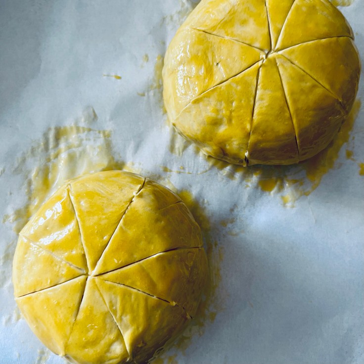 - Dorer les disques avec le jaune d’œuf et réserver au frigo de nouveau 15min