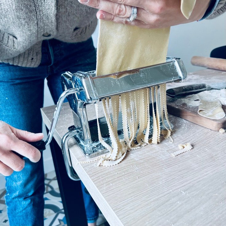 Par contre cela n’est pas compliqué et une fois qu’on a adopté le coup de main cela est très simple ! J’adore faire mes pâtes moi-même, cela me détend et cela apporte une sacrée fierté !