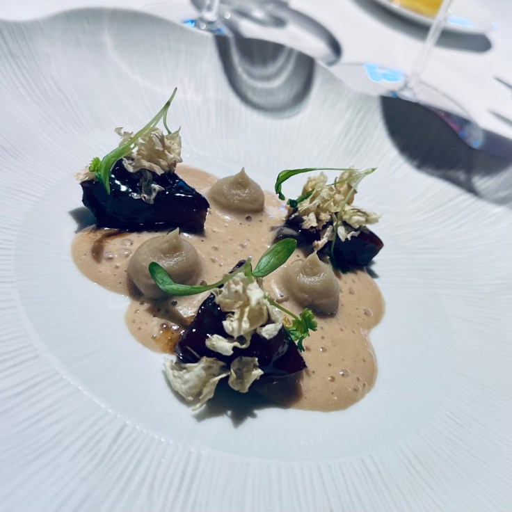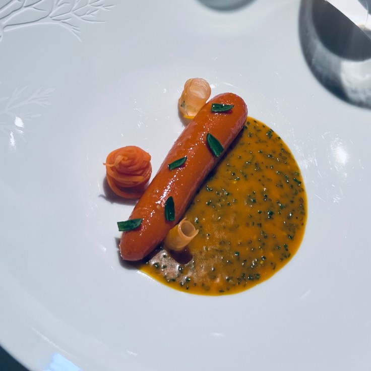 - Carotte des sables, gingembre fermenté, ciboulette (bluffant le jeu des deux textures, je n’en dirai pas plus)