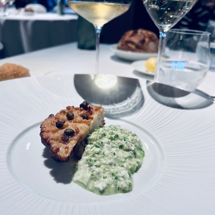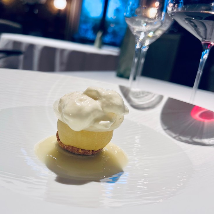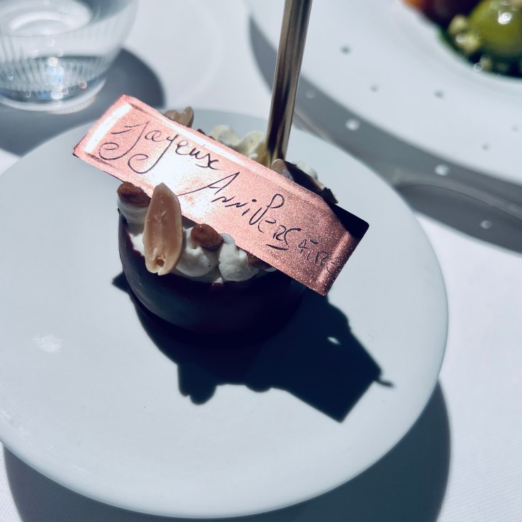 Lors de la réservation, j’ai indiqué vouloir rencontrer le Chef (si cela était possible of course) et la fin du repas le Chef est venu à notre rencontre. Quel plaisir d’échanger avec Jérôme Banctel, il est simple, hyper accessible et hyper sympa. Ce fut une très belle rencontre pour moi. The cherry on the cake 😉