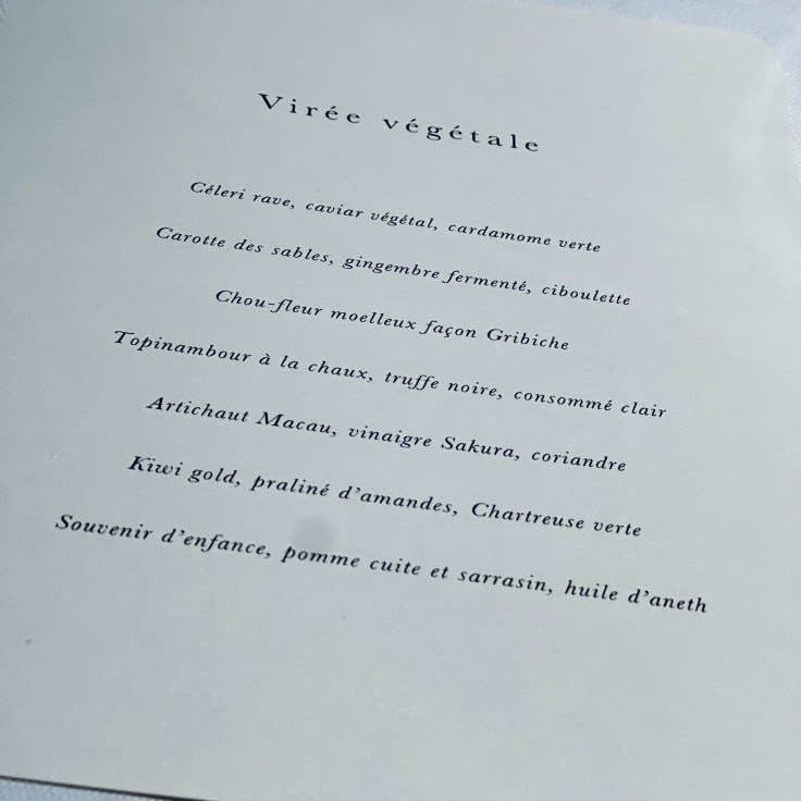 4 menus : du menu déjeuner au menu dégustation comprenant 9 plats. Cette fois-ci nous optons pour le menu « Virée Végétale », véritablement ode végétal en 7 étapes. MAGIQUE.