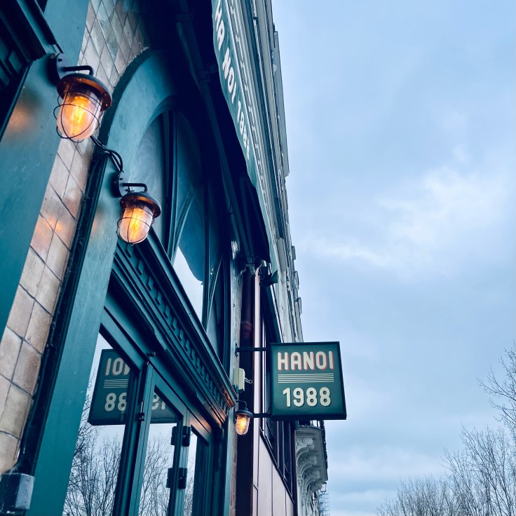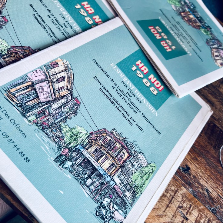 J’avais lu un certain nombre de critiques très positives sur les restaurants Ha Noi 1988 notamment par le biais de Très Très Bon. Aussi, lors d’une escapade parisienne en famille, j’avais au fond de ma tête cette adresse à tester. J’ai toujours organisé mes journées de vacances en fonction des restaurants que je voulais découvrir. Comme à Rome avec ma maman où, munies du Guide du Routard, nous avons parcouru plusieurs km à pied pour aller manger la meilleure morue un vendredi midi (jour de la morue)… Un exemple parmi tant d’autres !!!
