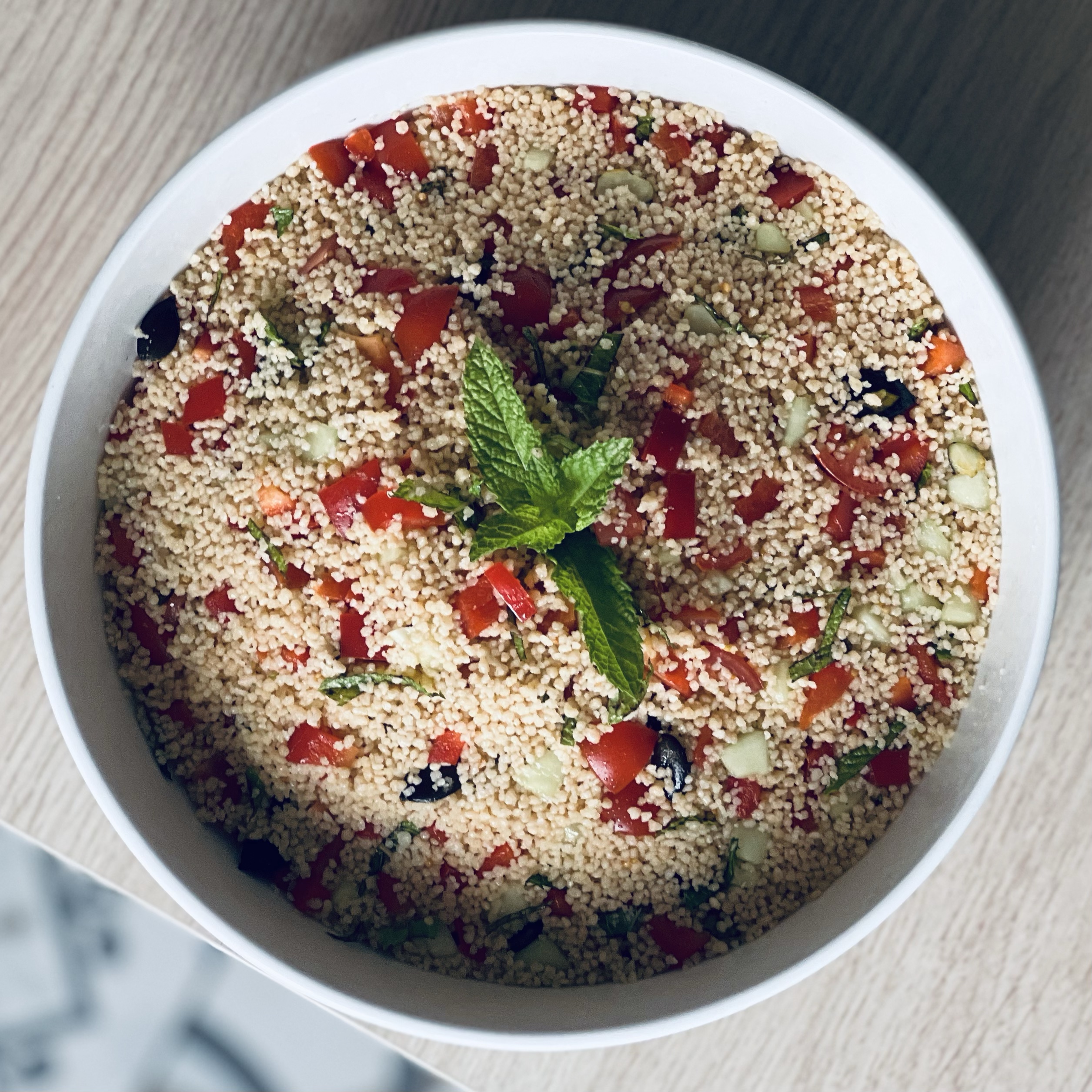 - Dans le saladier, ajouter tous les légumes à la semoule et la menthe