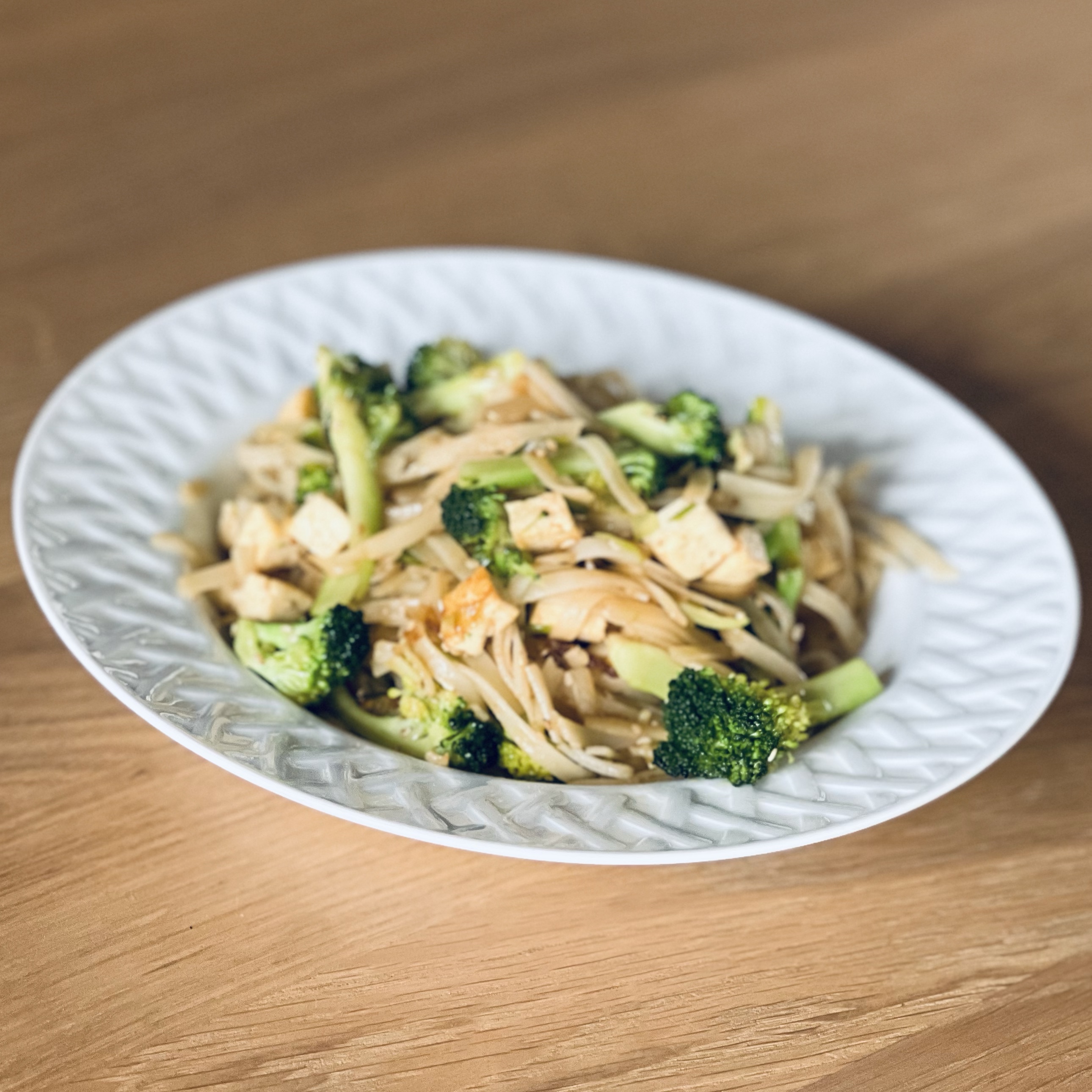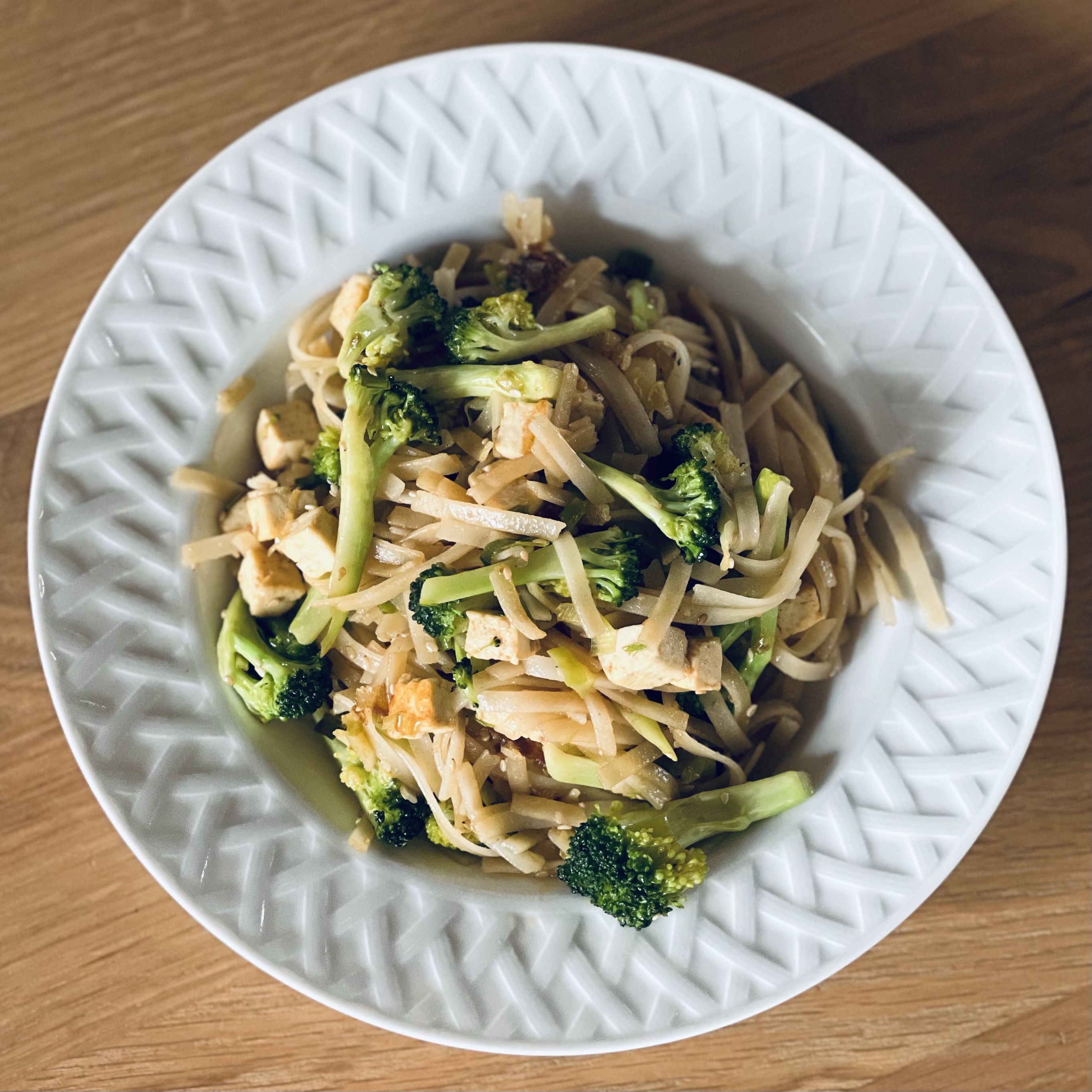Le wok de nouilles de riz est une recette hyper simple et parfaite pour un déjeuner en télétravail ou un dîner rapide à préparer.