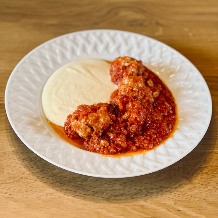 - Pendant que la sauce tomate réduit, préparer les boulettes