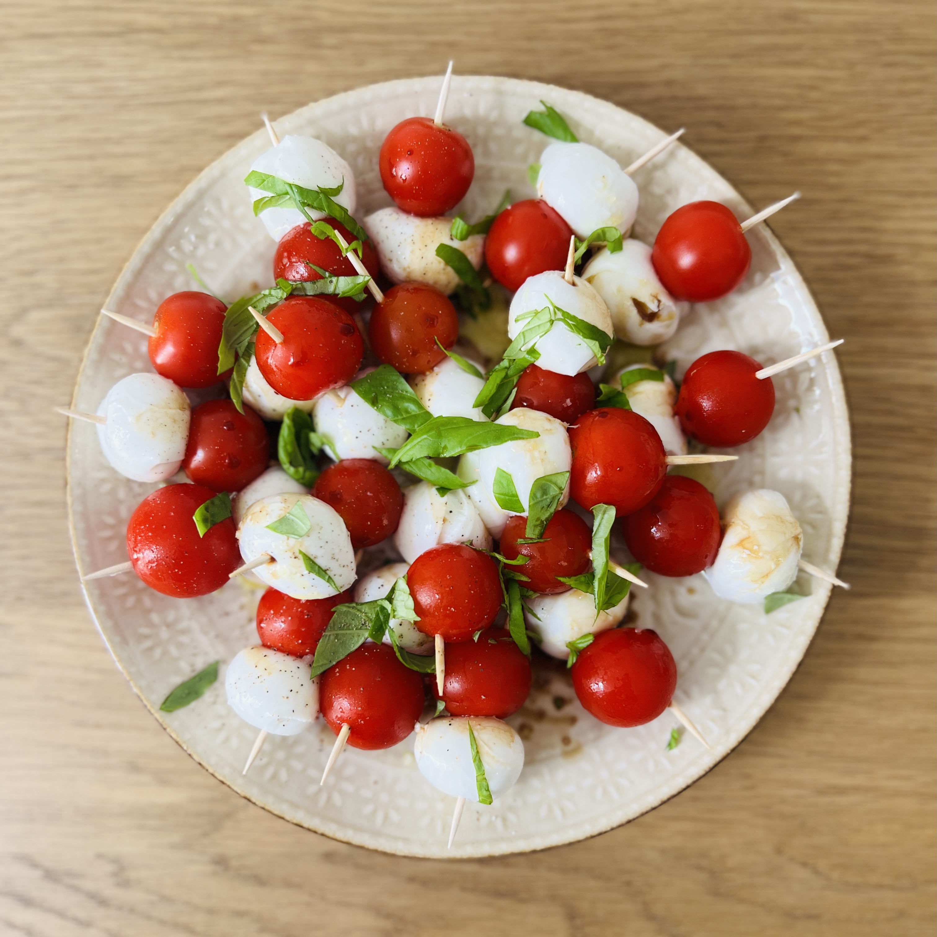 Transportez vos convives sous le soleil de l’Italie avec ces mini-brochettes mozzarella et tomate cerise, prêtes en un instant ! Inspirées des saveurs vibrantes de la cuisine méditerranéenne, ces bouchées fraîches allient la douceur de la mozzarella, la jutosité des tomates et le parfum du basilic. Parfaites pour un apéritivo chic accompagné d’un verre de Prosecco ou d’un Spritz, elles apporteront la dolce vita à votre table !